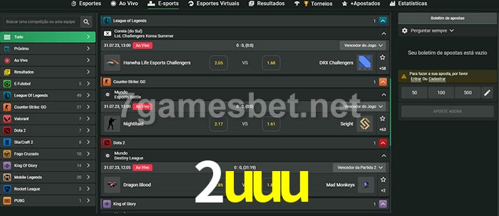 A aposta 2uuu oferece aos jogadores a experiência mais conveniente de apostas em eSports!